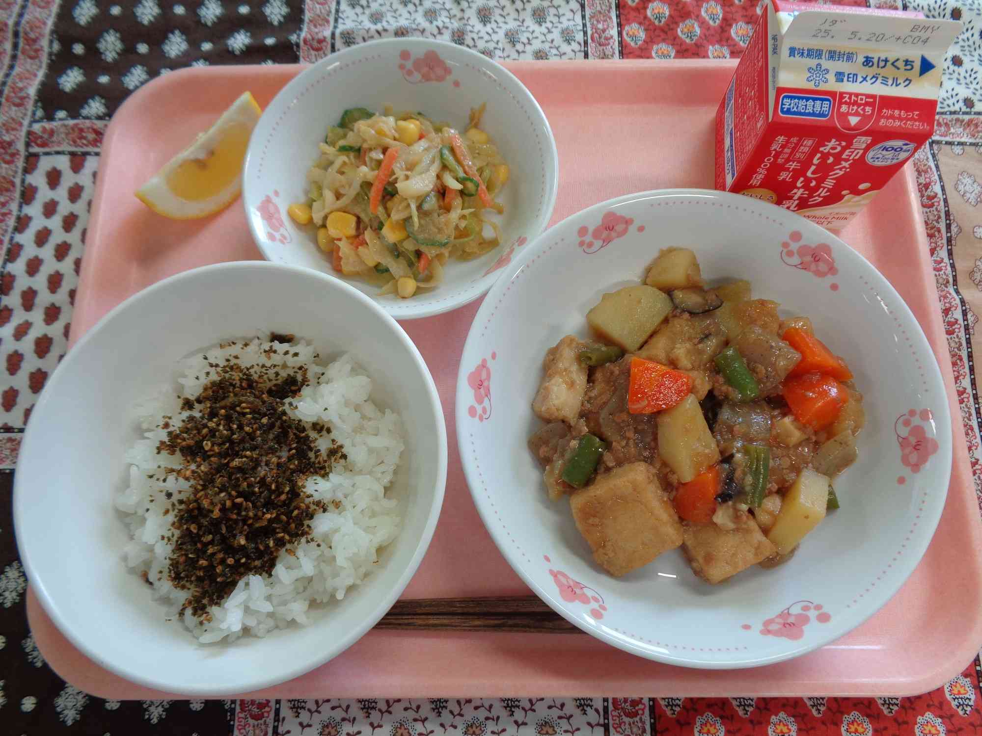 5月7日の給食 ○ごはん かつおふりかけ ○ぎゅうにゅう ○なまあげのそぼろに ○ごまだれゆでやさい ○ひゅうがなつ 今日は、たくさんの野菜とひき肉と一緒に、甘めに煮て「なまあげのそぼろに」を作りました。 なまあげとは「厚あげ」ともよばれ、ぶ厚い油あげのような見た目をしています。実は、なまあげも油あげも、元の正体は同じ「おとうふ」です。とうふをうすく切り、油であげたものが「油あげ」、厚く切って油であげたものが「生あげ」なんです。生あげという名前は、中がまだ「生っぽい」というところからついたそうです。みなさんの体をつくる赤色の食べもので、丈夫な骨や歯をつくるカルシウムが多く含まれています。 ご家庭でもぜひ活用してみてください!【添付ファイル】